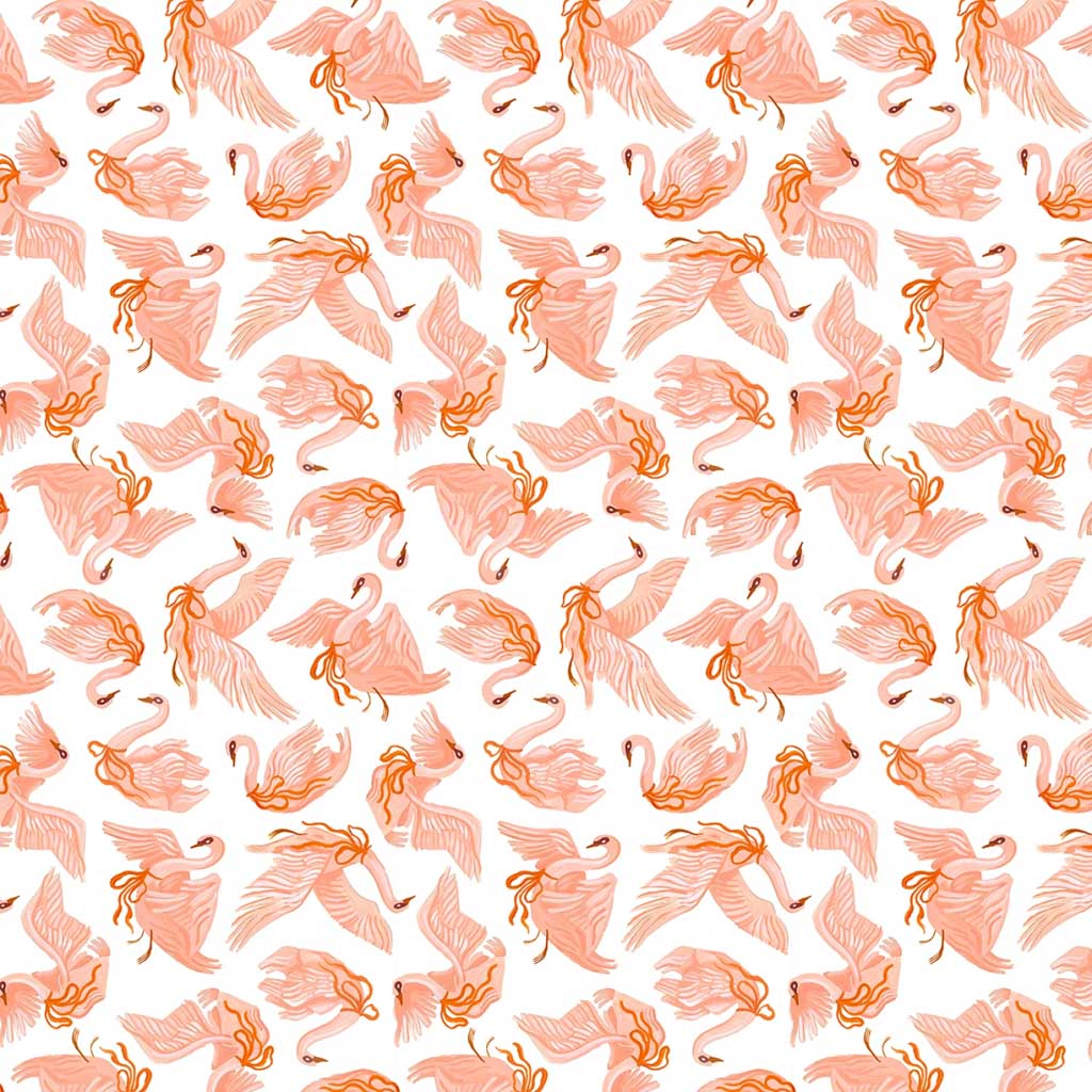 pattern of pink swans on a white background