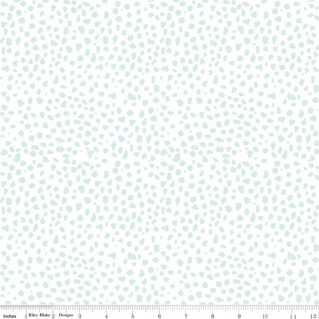 low-volume print featuring splotches of aqua