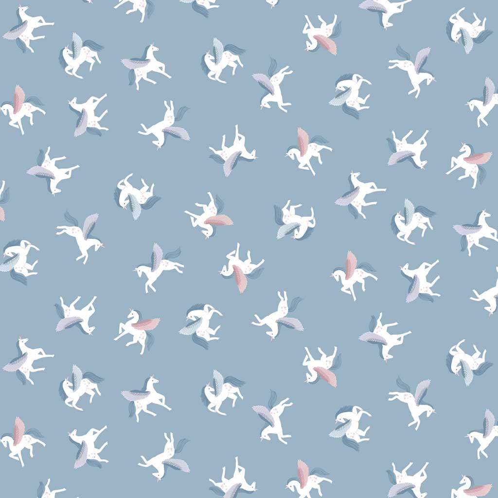 pattern of winged unicorns on a blue background